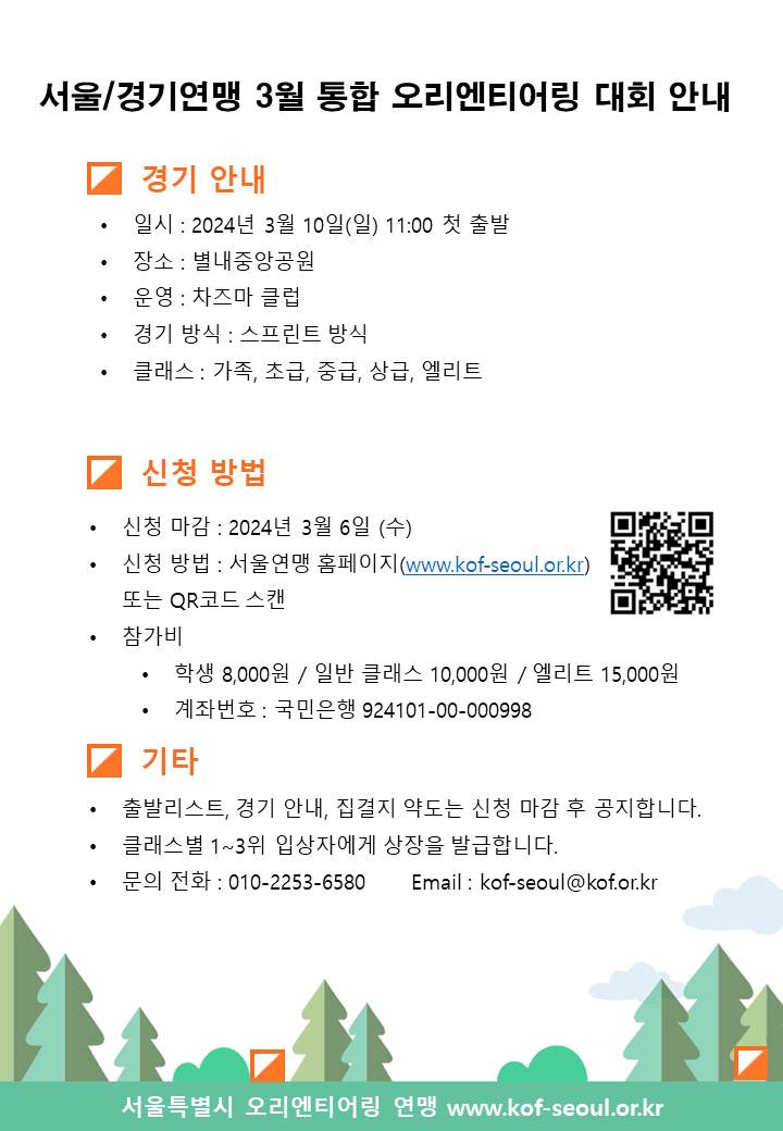 3월 서울경기통합 오리엔티어링대회 안내