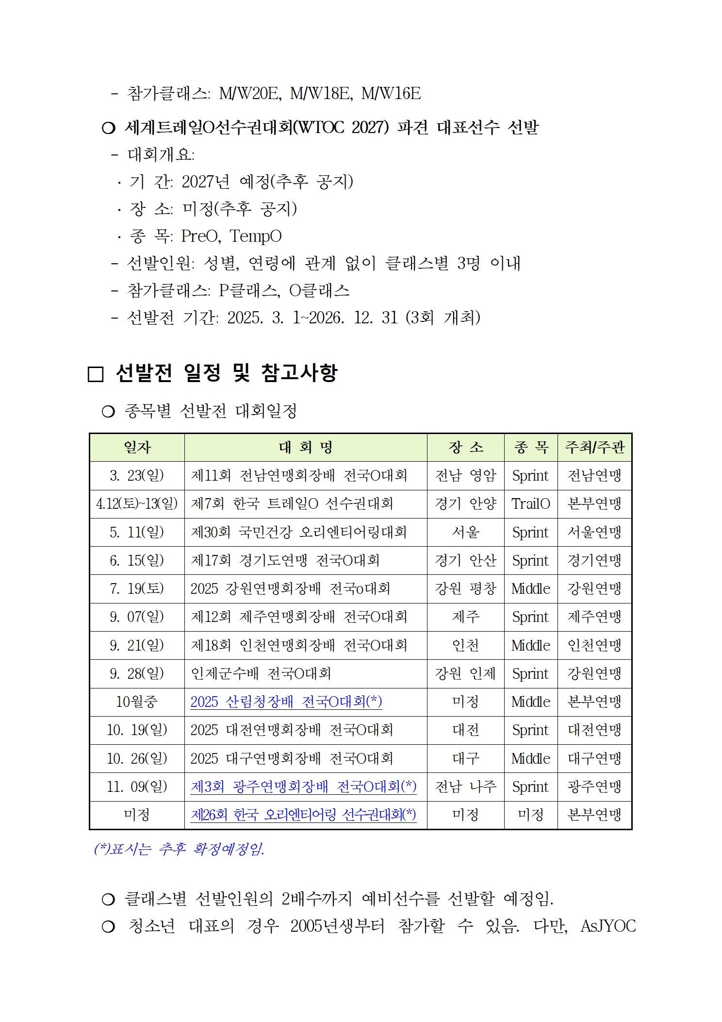 2026년 국제대회에 파견할 국가대표선수 선발계획을 다음과 같이 공지하오니 관심있는 선수들의 많은 참가 바랍니다.