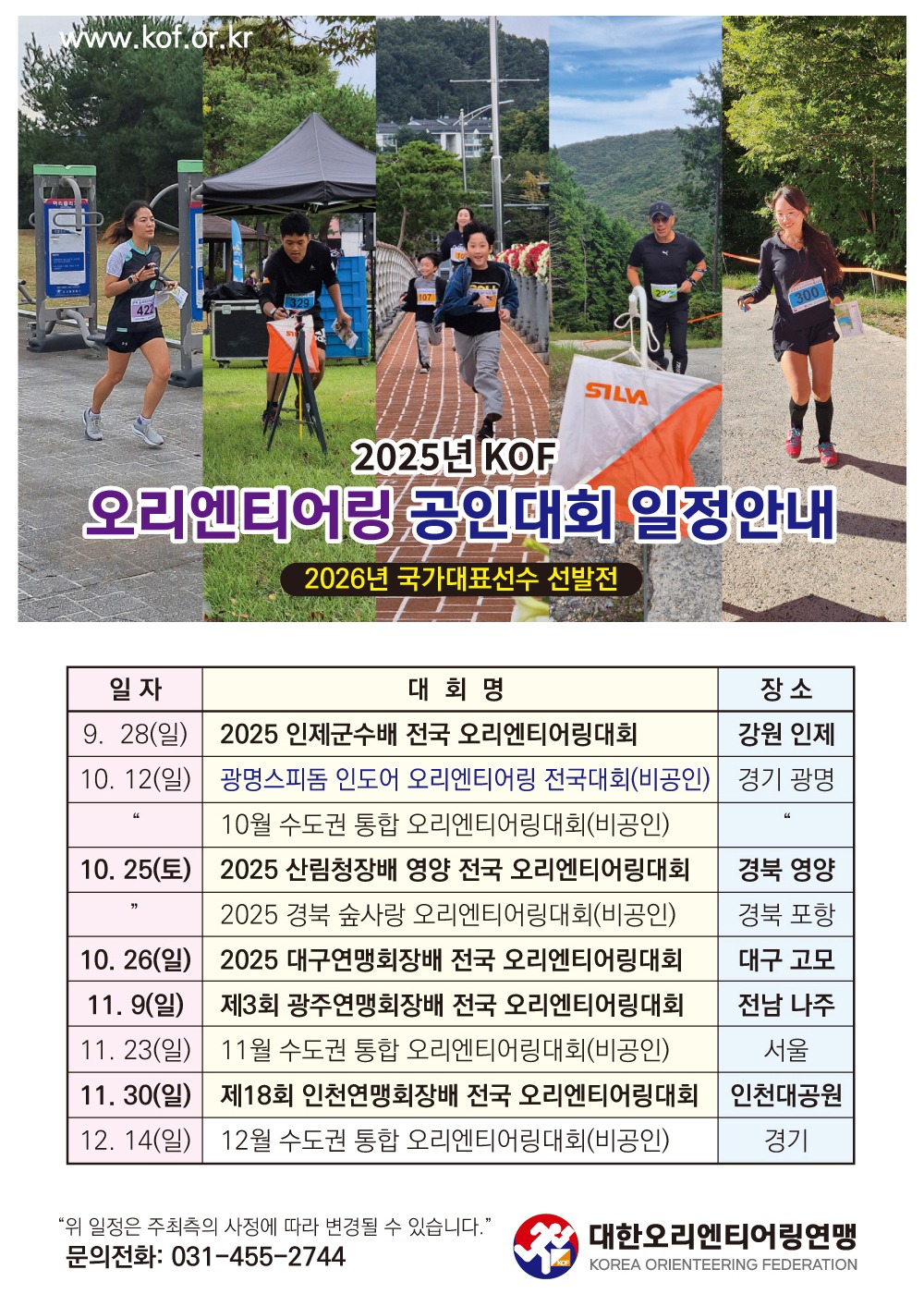 2025. 9. 22 기준 2025년 오리엔티어링 공인대회 일정을 다음과 같이 안내해드리오니 많은 참가 바랍니다.