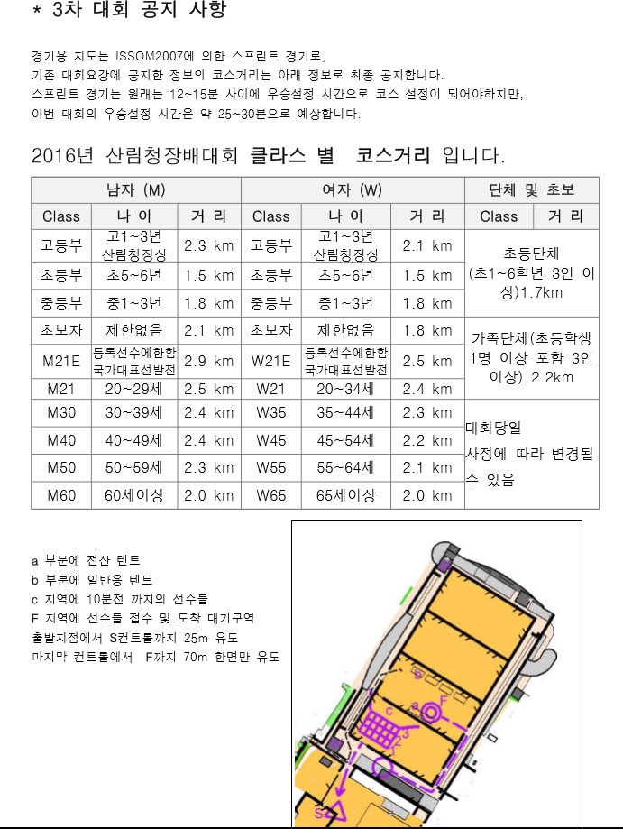 산림청장배 전국오리엔티어링대회 대회정보 3차 공지사항입니다.