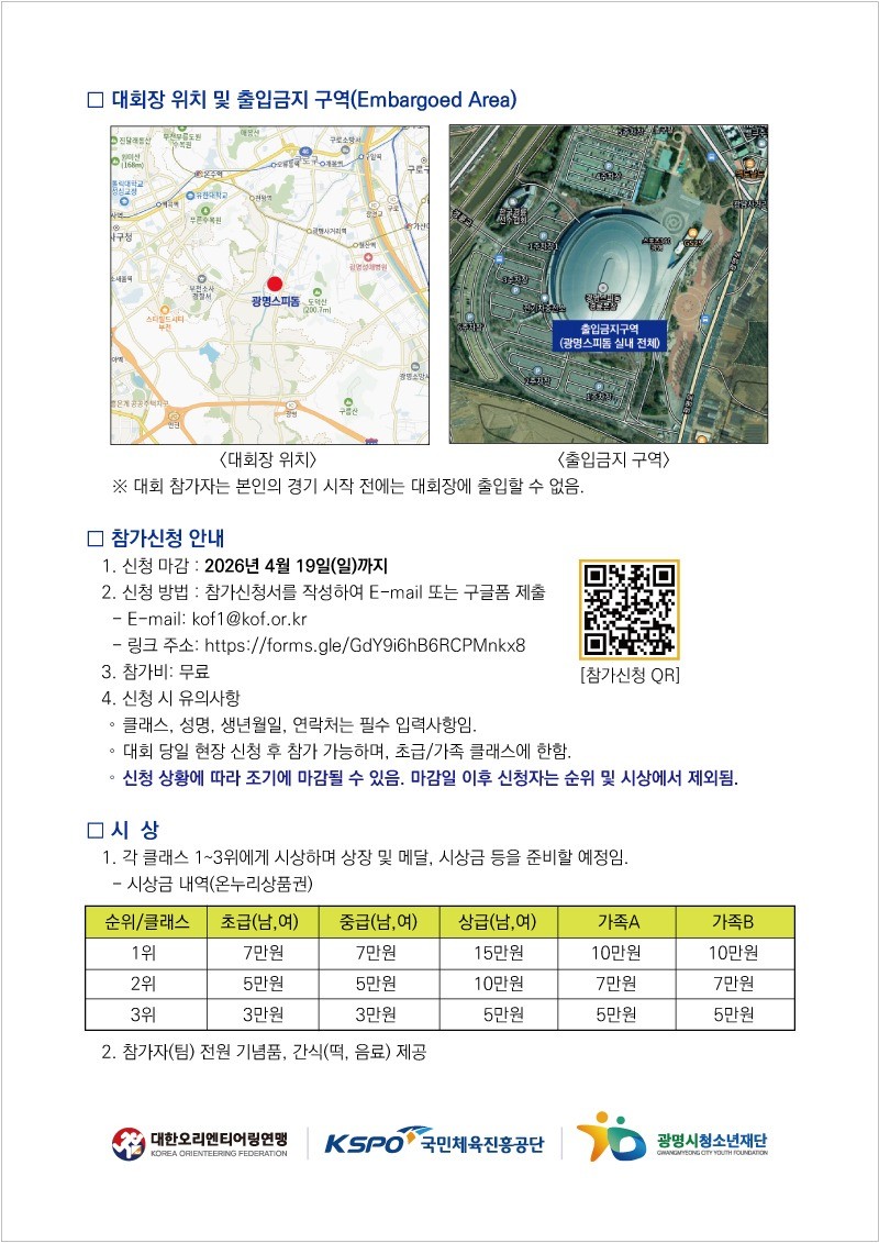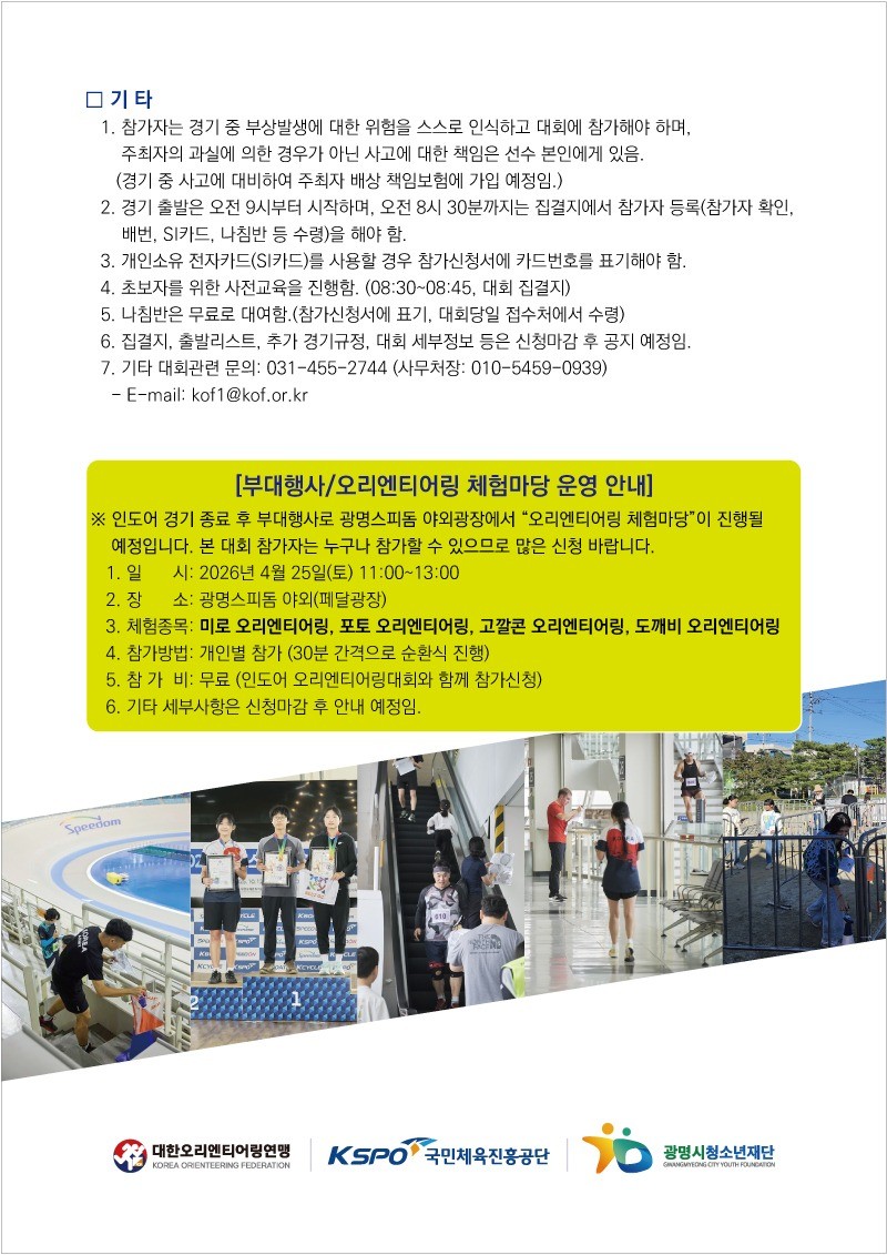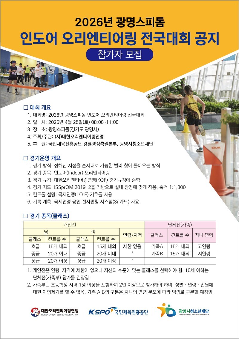 "2026 광명스피돔 인도어 오리엔티어링 전국대회"를 다음과 같이 개최하오니