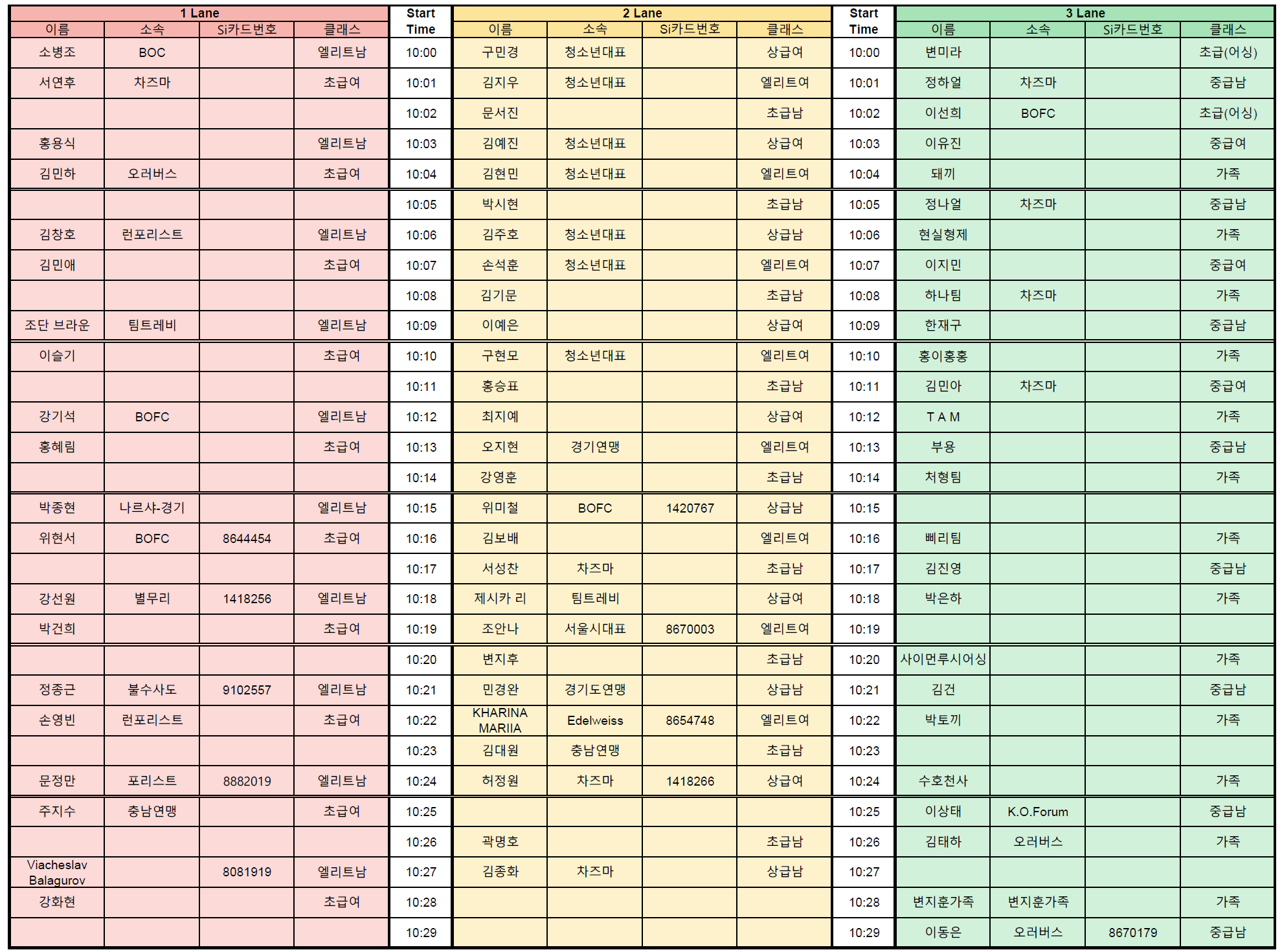 11. 신청마감후 출발리스트, 집결지약도, 경기장정보 등은 홈페이지에 공개하겠습니다.