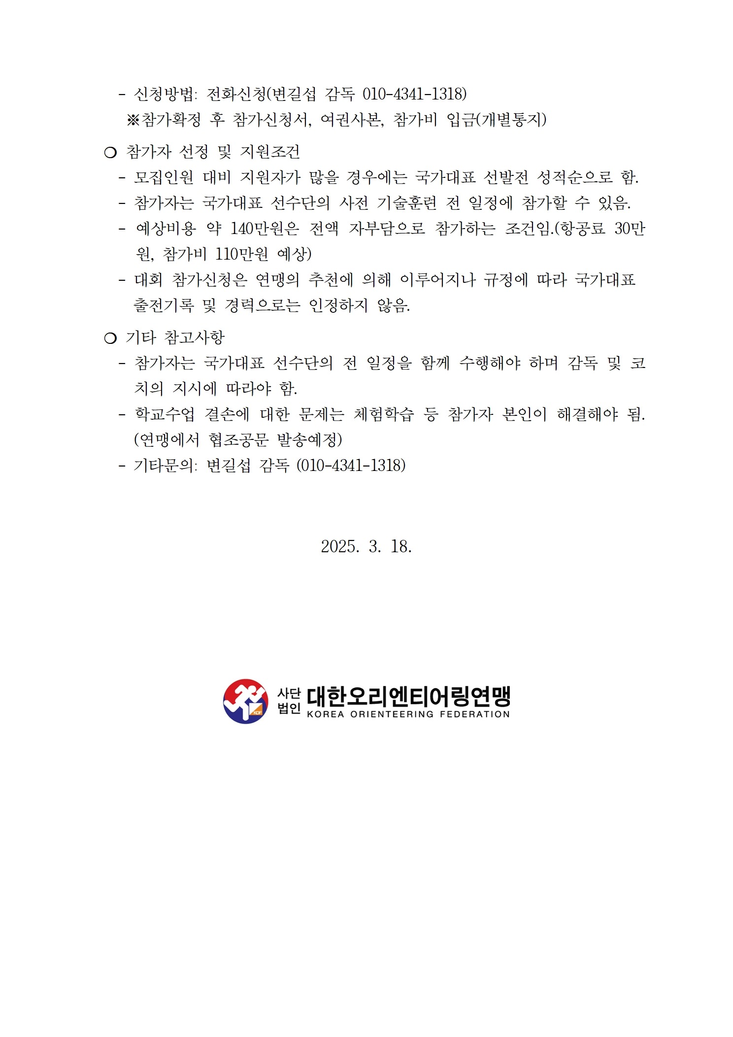 Orienteering Championships)에 M14, W14 클래스가 개설되었기에 다음과 같이 일반참가자를 모집하오니 많은 지원 바랍니다.