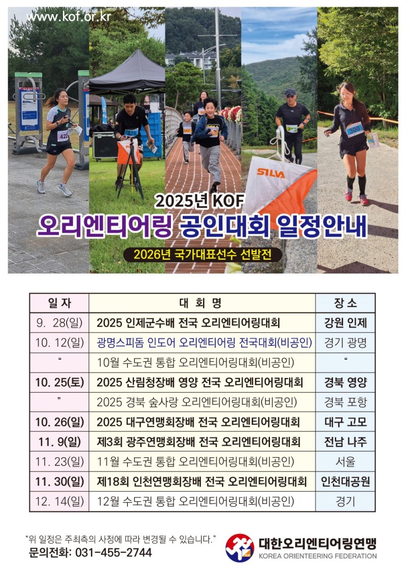 2025년 오리엔티어링 공인대회 일정안내(9. 22 수정)