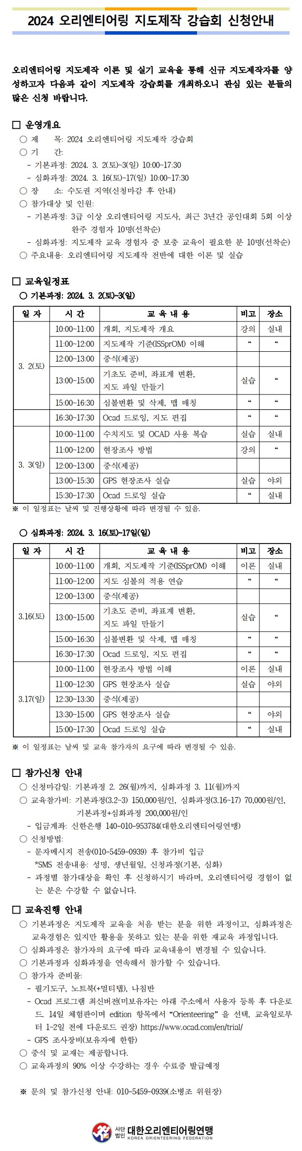 2024년도 지도제작 강습회를 다음과 같이 개최하오니 관심있는 분들의 많은 신청 바랍니다.