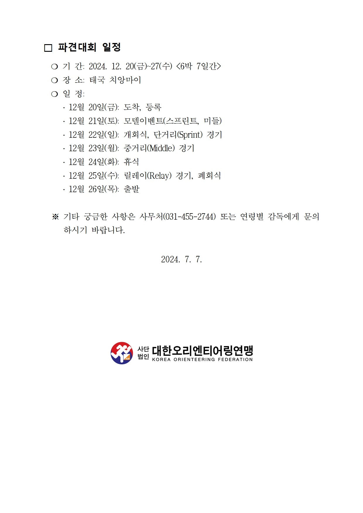 2024 아시아선수권대회(AsOC & AsJYOC) 파견 대표선수단이 다음과 같이 확정되었기에 이를 공지합니다.