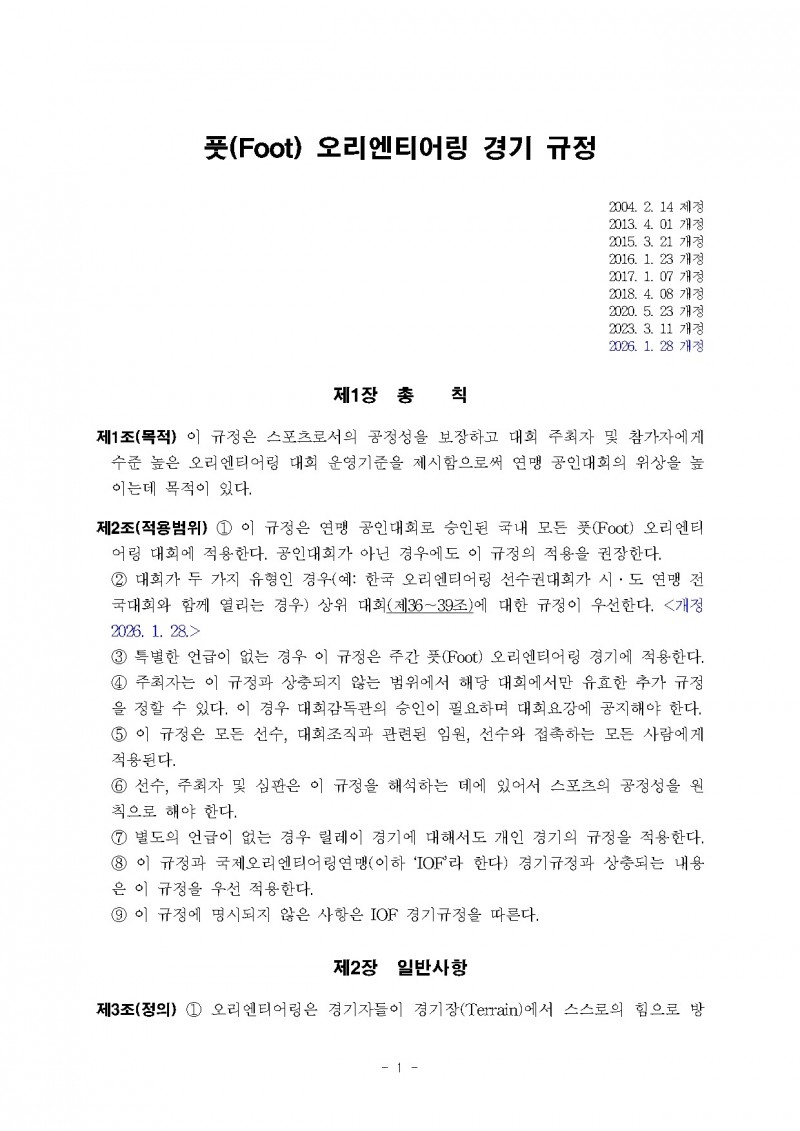 풋(Foot) 오리엔티어링 경기규정입니다. 규정 원문은 첨부파일을 참고하시기 바랍니다.